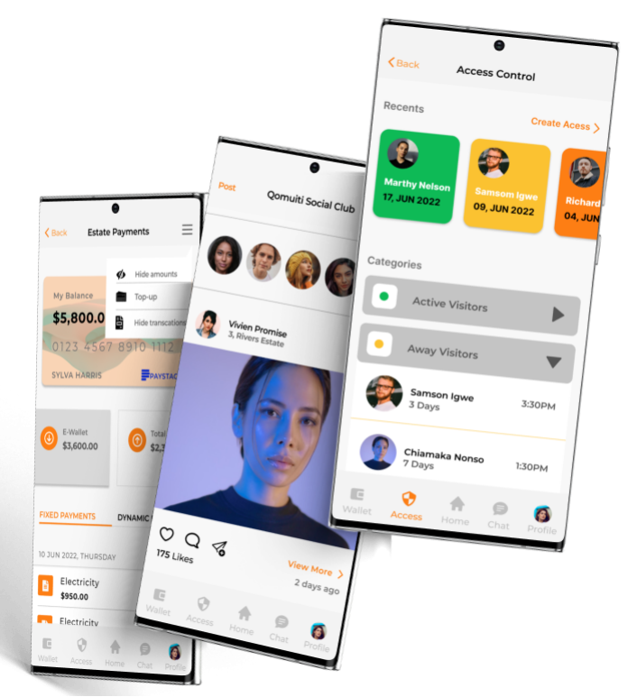 QOMUNITI APP is a modern estate management application, that helps estates stay safe and enjoy community life together. QOMUNITI offers a wide range of services such as security and access control, E-wallet, estate payments and services, panic button, information management etc.